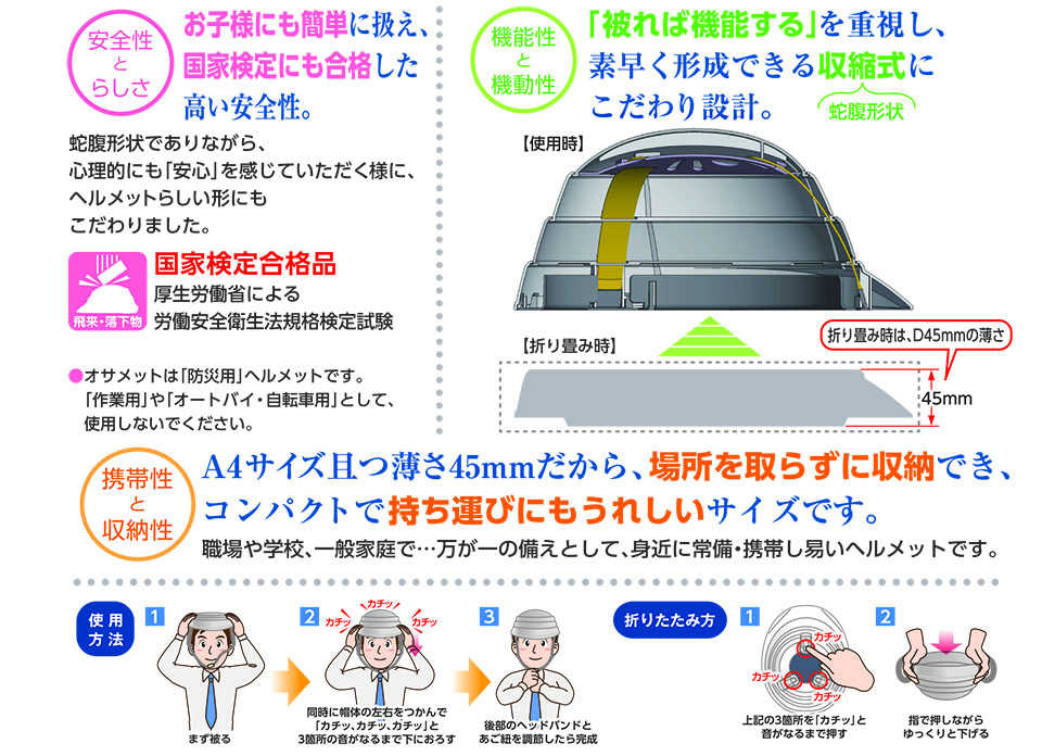 品名 防災用ヘルメット オサメット