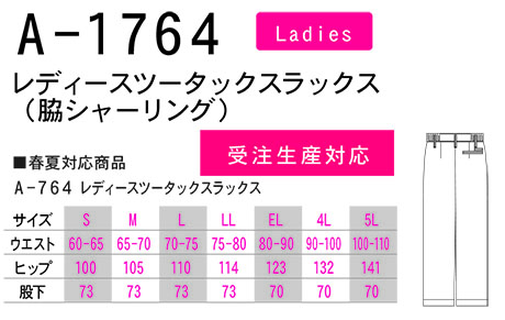 A-1764/レディースツータックスラックス(脇シャーリング) |