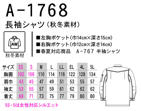 A-1768/長袖シャツ(秋冬素材) |