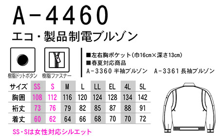 A-4460/エコ・製品制電ブルゾン |