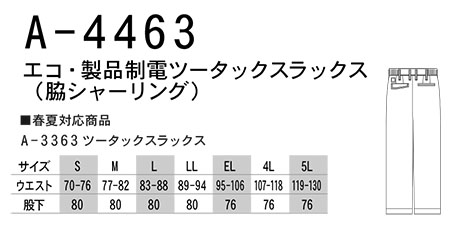 A-4463/エコ・製品制電ツータックスラックス(脇シャーリング) |