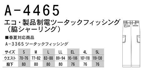 A-4465/エコ・製品制電ツータックフィッシング(脇シャーリング) |