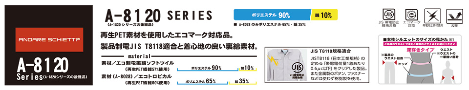 A-8125/エコ・製品制電ツータックフィッシング(脇シャーリング) |