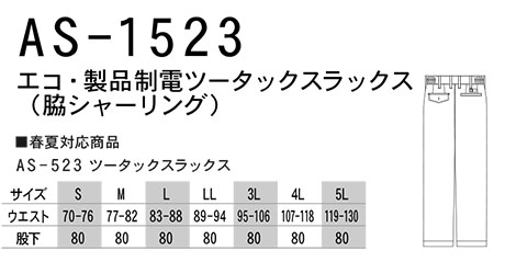 AS-1523/エコ・製品制電ツータックスラックス(脇シャーリング) |