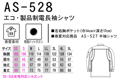 AS-528/エコ・製品制電長袖シャツ |
