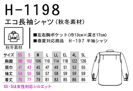 H-1198/エコ長袖シャツ(秋冬素材) |