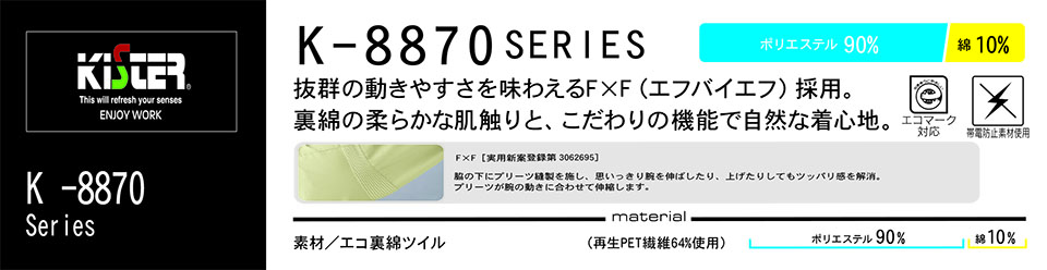 ポリエステル90%・綿10%(再生PET繊維64%使用) |