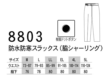 8803/防水防寒スラックス(脇シャーリング) |