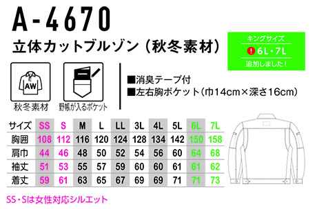 A-4670/立体カットブルゾン(秋冬素材) |