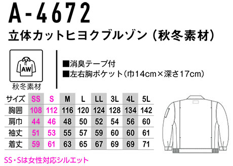 A-4672/立体カットヒヨクブルゾン(秋冬素材) |