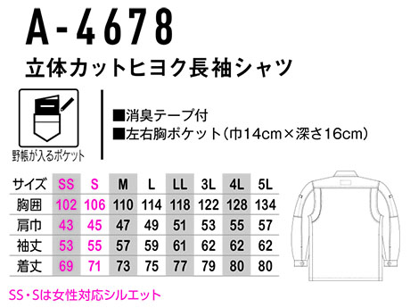 A-4678/立体カットヒヨク長袖シャツ |