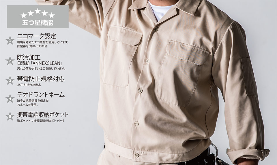 エコ5IVEスター開襟長袖シャツ |