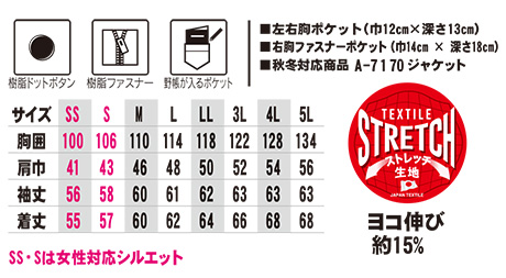 A-7071/ストレッチ長袖ジャケット |