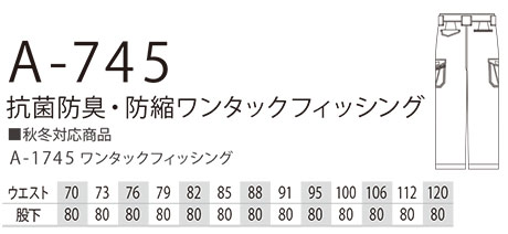 A-745/抗菌防臭・防縮ワンタックフィッシング |