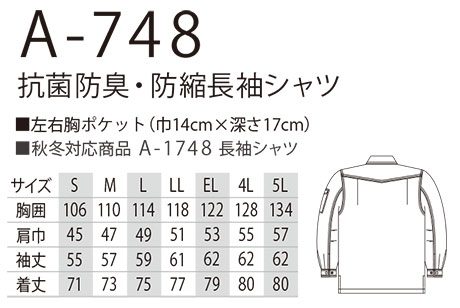 A-748/抗菌防臭・防縮長袖シャツ |