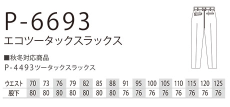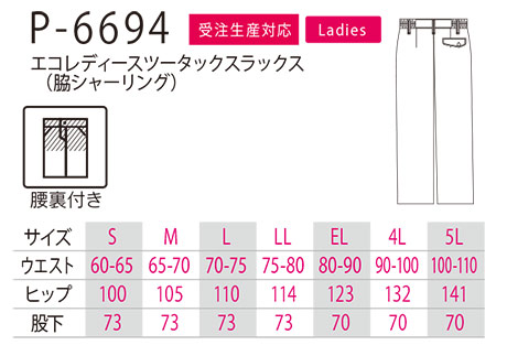 P-6694/エコレディースツータックスラックス(脇シャーリング)(受注生産対応) |