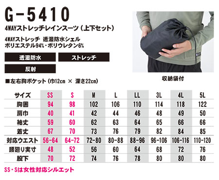 G-5410/4WAYストレッチレインスーツ(上下セット) |