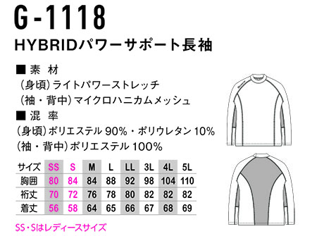 コーコス 【CO-COS】 春・夏用作業服 ワークウェア (POWER SUPPORT) G-1118/HYBRIDパワーサポート長袖