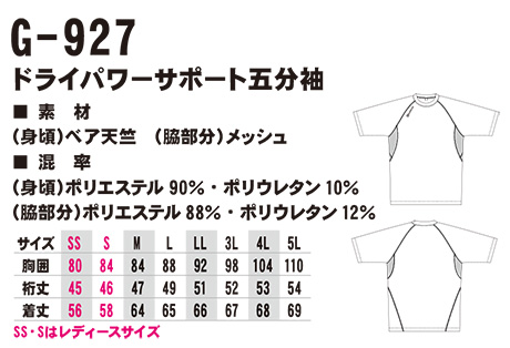 G-927/ドライパワーサポート五分袖 |