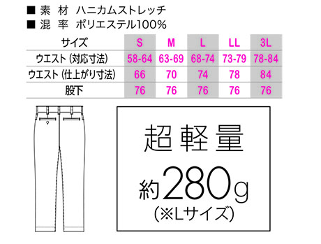 G-484/ストレッチ軽量レディースパンツ |