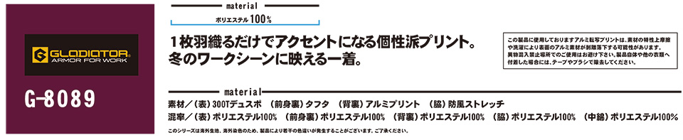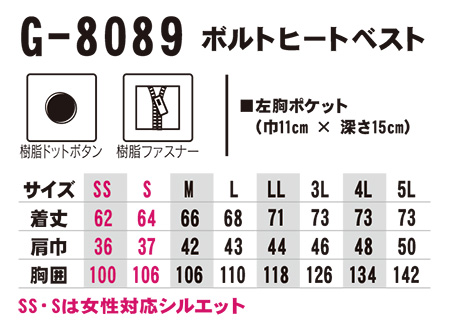 コーコス 【CO-COS】 秋・冬用作業服 ワークウェア (WINTER MODEL) G-8089/ボルトヒートベスト