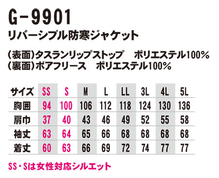 G-9901/リバーシブル防寒ジャケット