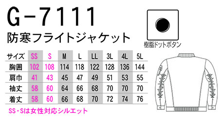 コーコス 【CO-COS】 秋・冬用作業服 ワークウェア (WINTER MODEL) G-7111/防風フライトジャケット