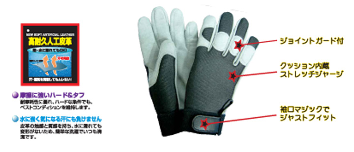 | 素材 | 手の平:人工皮革 手の甲:ストレッチャージャージスポンジ |