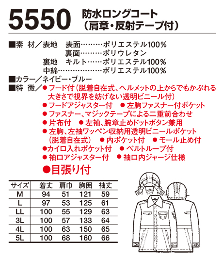 5550/防水ロングコート(肩章・反射テープ付) |