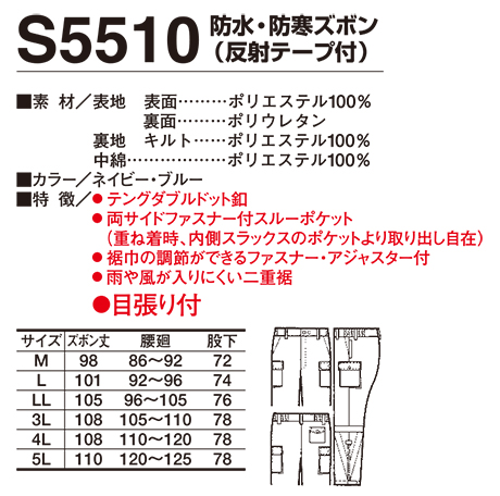 S5510/防水・防寒ズボン(反射テープ付) |