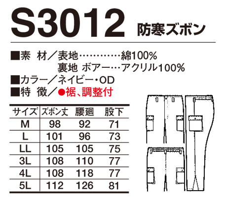 S3012/防寒ズボン |