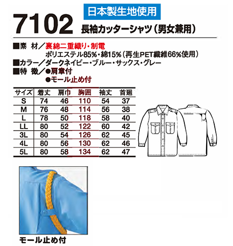 7102/長袖カッターシャツ(男女兼用) |