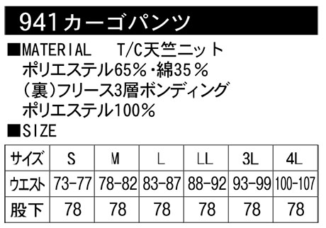 HOSHI-H(ホシ-H) 秋・冬用作業服 941/カーゴパンツ