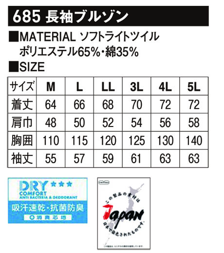 685/長袖ブルゾン |