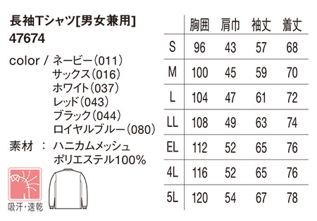 47674/長袖Tシャツ[男女兼用] |