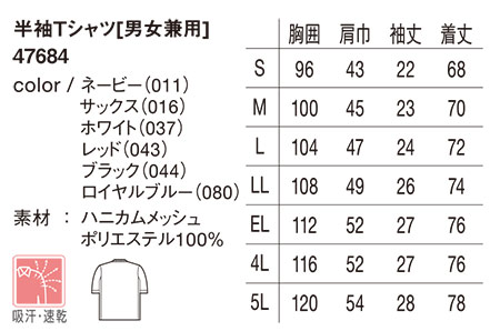 47684/半袖Tシャツ[男女兼用] |