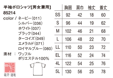 85214/半袖ポロシャツ[男女兼用] |