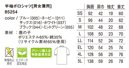 85254/半袖ポロシャツ[男女兼用] |
