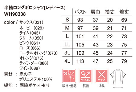 WH90338/半袖ロングポロシャツ[レディース] |