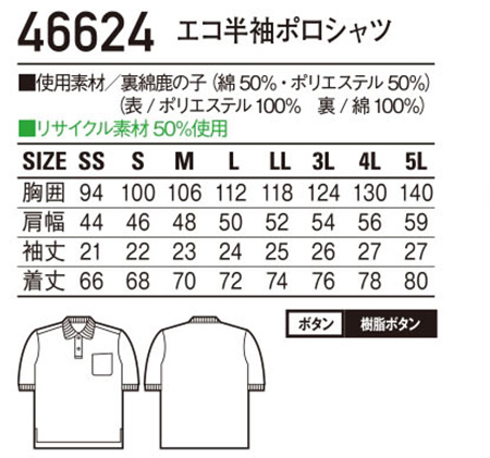 46624/エコ半袖ポロシャツ |