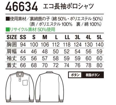 46634/エコ長袖ポロシャツ |