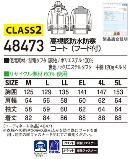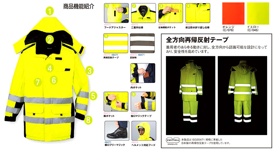 (48473シリーズ/蛍光素材と再帰反射テープを使用した高視認性防水防寒) |