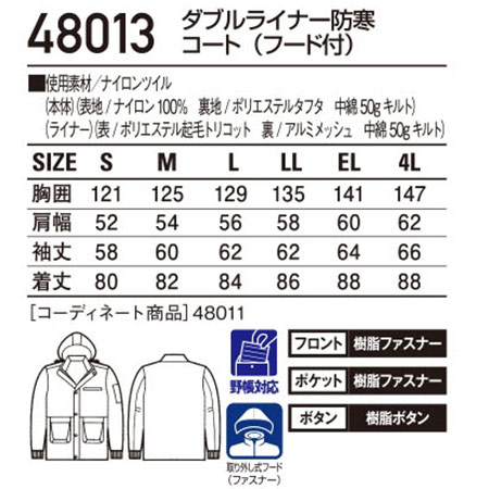 48013/ダブルライナー防寒コート(フード付) |