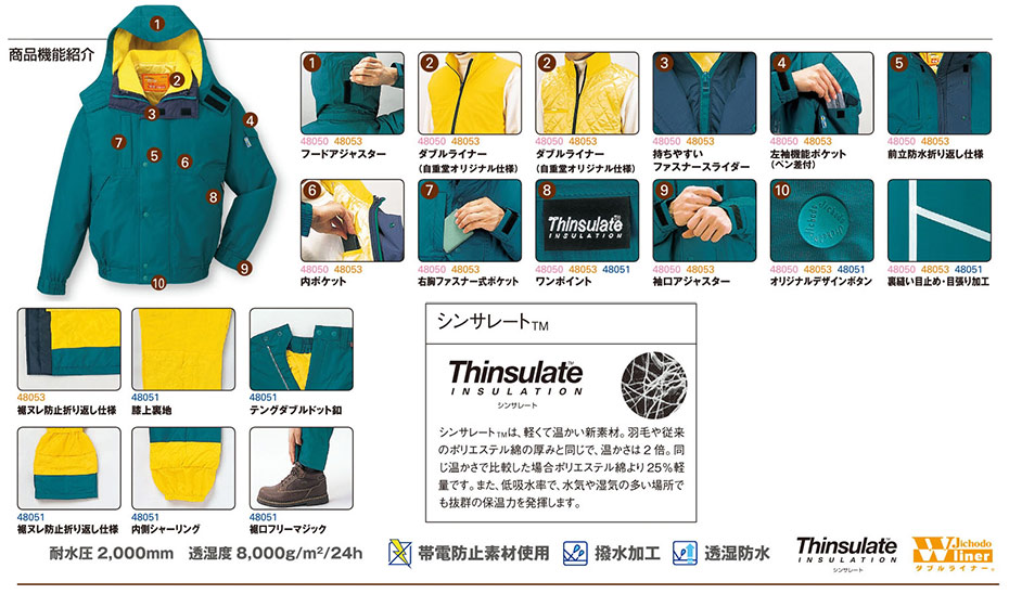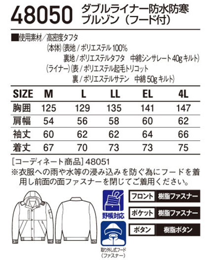 48050/ダブルライナー防水防寒ブルゾン(フード付) |