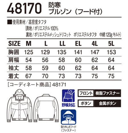 48170/防寒ブルゾン(フード付) |
