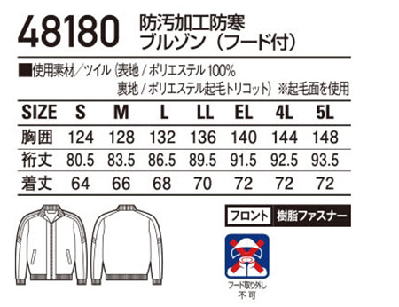 (株)自重堂 秋・冬用作業服(防寒) 48180/防汚加工防寒ブルゾン
