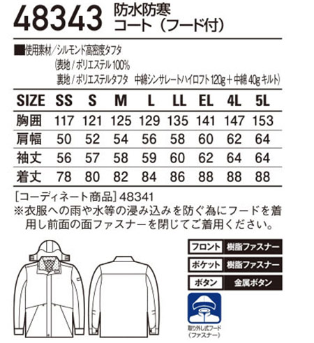 48343/防水防寒コート(フード付) |