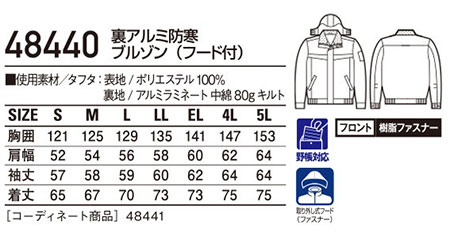 48440/裏アルミ防寒ブルゾン(フード付) |