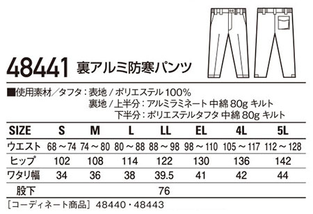 48441/裏アルミ防寒パンツ |