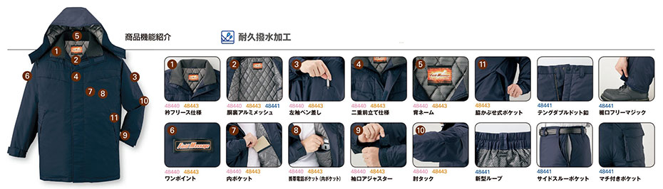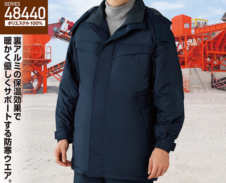 48443/裏アルミ防寒コート(フード付) |